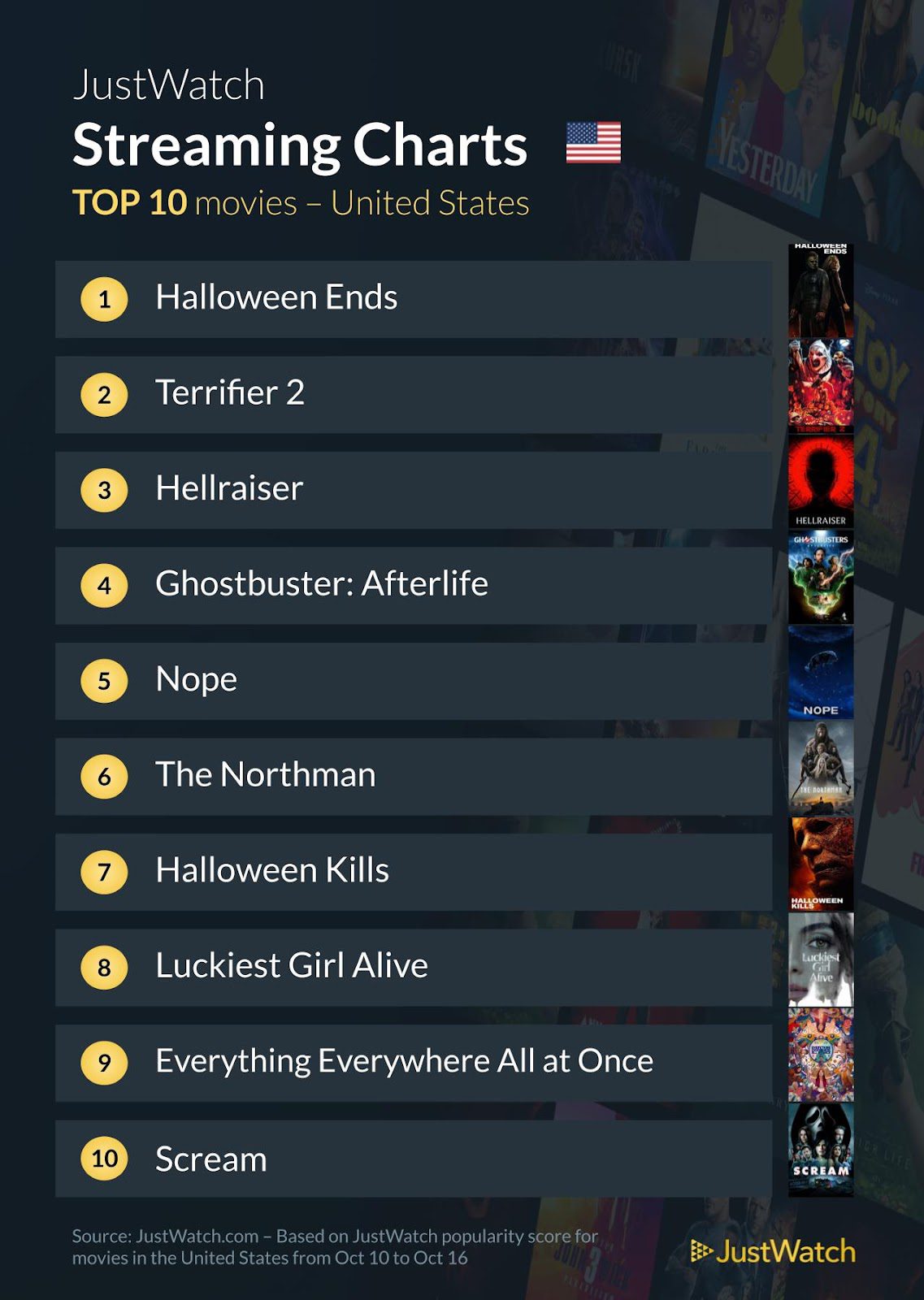 Hellraiser had also made the list, landing in third, followed by Ghostbuster: Afterlife, Nope, The Northman, Halloween Kills, Luckiest Girl Alive, Everything Everywhere All at Once, and Scream.
