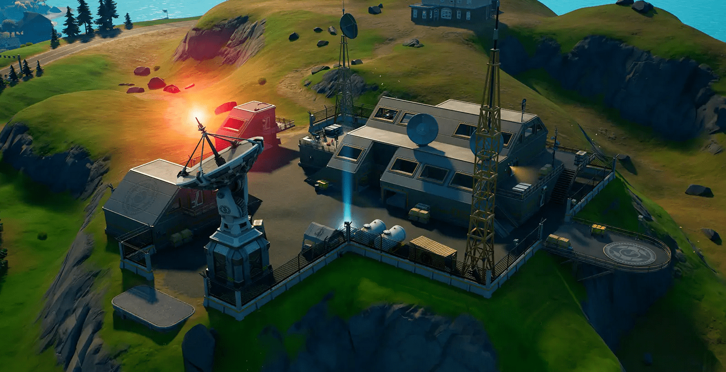 Dinky Dish is among the last IO Bases in Fortnite this season. Situated East of Craggy Cliffs, this location is home to many ammo boxes, regular chests, and three supply chests.