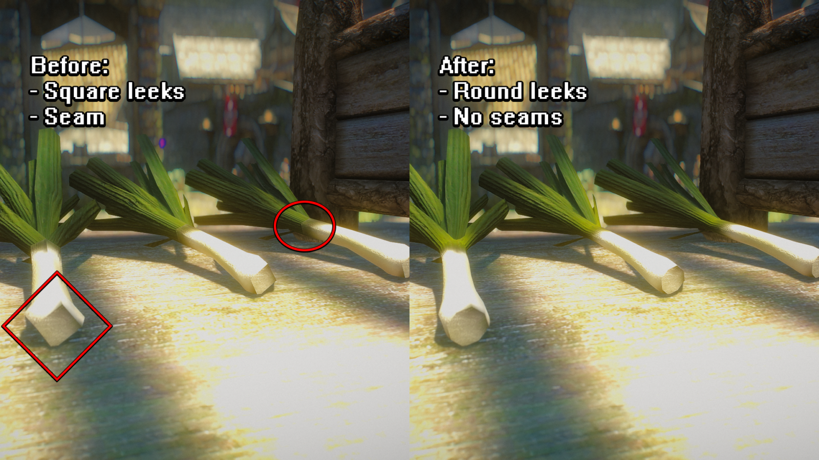 What makes this mod special is how it changes up the leek textures. These are the little bumpy square parts that you see at the bottom of the leeks. Rather than just making these bumpy areas wider or lower, the mod makes them smaller and rounder, looking more like real-life leeks This creates a much more natural look to the humble plant.